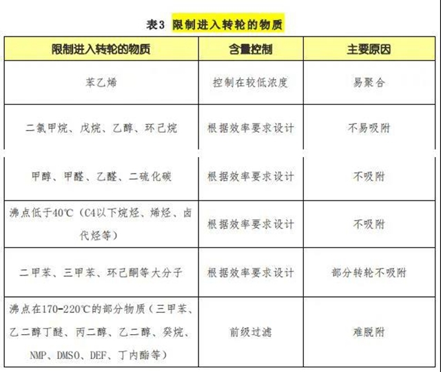 在沸石分子篩轉(zhuǎn)輪上易發(fā)生聚合反應(yīng)的烯烴類物質(zhì)、有機(jī)硅氧烷、沸 點(diǎn)超高260℃以上的大分子物質(zhì)等,可能會(huì)對(duì)轉(zhuǎn)輪造成永久性損壞。現(xiàn)列出沸石轉(zhuǎn)輪無法處理的物質(zhì)成分,如下圖: