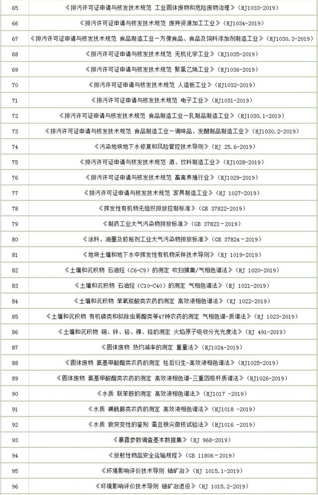 那么,本文不如再歸結(jié)一下,2019年生態(tài)環(huán)境部制修訂的96項(xiàng)國(guó)家生態(tài)環(huán)境標(biāo)準(zhǔn),以及修改的20多部生態(tài)環(huán)境法律、行政法規(guī)都有哪些上榜了。
