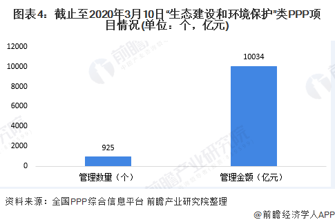 PPP(公私合營)模式是固廢處理項(xiàng)目的主要運(yùn)營模式之一。根據(jù)全國PPP綜合信息平臺項(xiàng)目管理庫數(shù)據(jù)顯示,截止至2020年3月10日,“生態(tài)建設(shè)和環(huán)境保護(hù)”類項(xiàng)目數(shù)量為925個(gè),數(shù)量排名各類項(xiàng)目中第三名;項(xiàng)目金額為1萬億元,排名所有項(xiàng)目中第4名??梢?,包括固廢處理項(xiàng)目在內(nèi)的生態(tài)環(huán)保在PPP項(xiàng)目中依然占據(jù)關(guān)鍵地位。