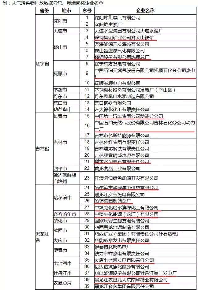 ▲10月,東北地區(qū)大氣污染物涉嫌超標(biāo)排放的39家企業(yè)名單大企業(yè)本應(yīng)是遵紀(jì)守法的模范,在環(huán)保方面做表率,帶頭履行社會責(zé)任,然而卻涉嫌超標(biāo)排放,實(shí)屬不該。一是集團(tuán)缺乏有效監(jiān)管,環(huán)保責(zé)任沒有落實(shí)到位,這屬于管理不善。二是雖然明知下屬企業(yè)超標(biāo)排污卻聽之任之,沒有采取措施阻止污染,這屬于縱容、包庇。無論是哪種情況,都表明一些大企業(yè)、大集團(tuán)在履行環(huán)保責(zé)任方面存在缺失。