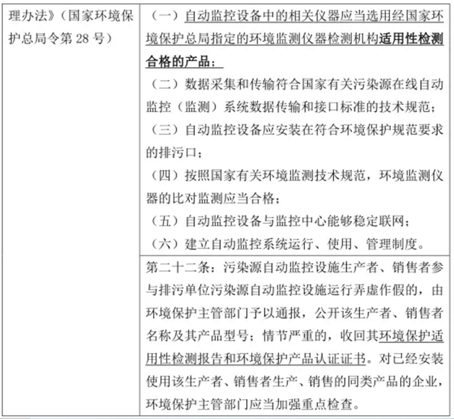 根據(jù)上述法律規(guī)定,安裝和使用在線監(jiān)測(cè)設(shè)備應(yīng)當(dāng)符合國(guó)家的規(guī)定和相應(yīng)規(guī)范,尤其在自動(dòng)監(jiān)控設(shè)備中相關(guān)儀器的選用上。目前我國(guó)對(duì)環(huán)境保護(hù)產(chǎn)品實(shí)行認(rèn)定認(rèn)證制度,由中國(guó)環(huán)境保護(hù)產(chǎn)業(yè)協(xié)會(huì)(以下簡(jiǎn)稱“中環(huán)協(xié)”)進(jìn)行環(huán)保產(chǎn)品認(rèn)證,中國(guó)環(huán)境監(jiān)測(cè)總站(以下簡(jiǎn)稱“監(jiān)測(cè)總站”)進(jìn)行適用性檢測(cè)。在實(shí)踐中,中環(huán)協(xié)進(jìn)行環(huán)保產(chǎn)品認(rèn)證以監(jiān)測(cè)總站出具的適用性檢測(cè)報(bào)告作為其認(rèn)證基礎(chǔ)條件。除個(gè)別省份對(duì)環(huán)保產(chǎn)品認(rèn)證有強(qiáng)制性備案要求外,大部分省份采取自愿認(rèn)證原則,而在線監(jiān)測(cè)產(chǎn)品的適用性檢測(cè)則是《污染源自動(dòng)監(jiān)控管理辦法》明文規(guī)定作為儀器選用的前提條件。