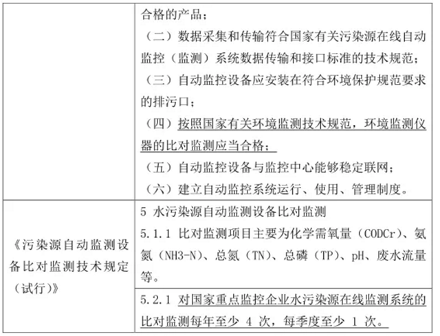 此外,在《比對(duì)監(jiān)測(cè)技術(shù)規(guī)定》中還對(duì)水污染自動(dòng)監(jiān)測(cè)設(shè)備的各項(xiàng)監(jiān)測(cè)項(xiàng)目的監(jiān)測(cè)方法、監(jiān)測(cè)條件、取樣方式、誤差計(jì)算公式等做了明確要求和限制。