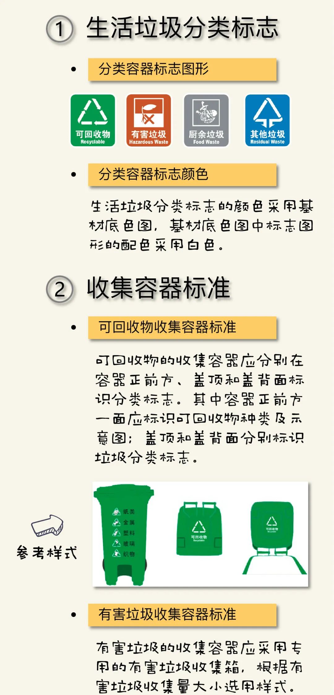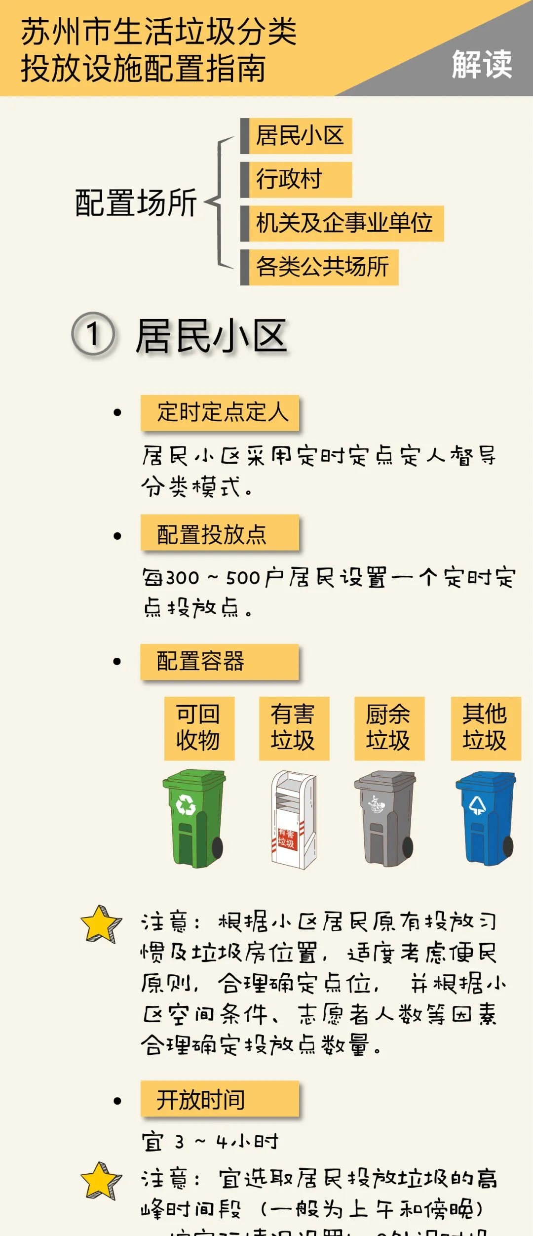 生活垃圾分類投放設施配置應與區(qū)域分類收集、分類運輸、分類處理系統(tǒng)和生活垃圾產(chǎn)生量、收運頻率要求相適應。本文匯總了有關蘇州市生活垃圾投放設施配置的知識,供大家參閱。