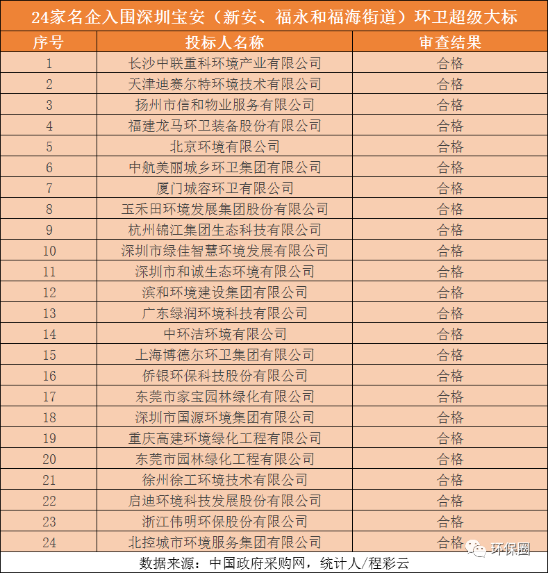 據(jù)了解,深圳寶安84億環(huán)衛(wèi)一體化PPP項(xiàng)目的年服務(wù)費(fèi)高達(dá)到5.6億元/年,服務(wù)期限15年,總合同金額達(dá)84億元,是迄今以來國(guó)內(nèi)最大的環(huán)衛(wèi)一體化項(xiàng)目,吸引了24家環(huán)衛(wèi)名企參與角逐。