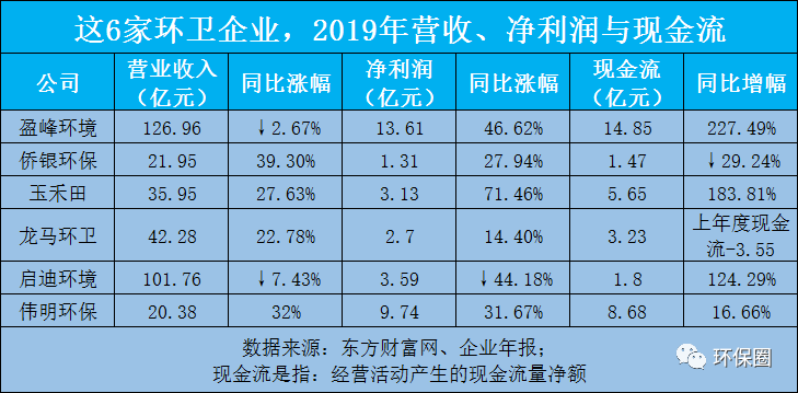 在這三家企業(yè)中,盈峰環(huán)境2019的業(yè)績(jī)答卷遠(yuǎn)超其他兩家,無論是營(yíng)業(yè)收入,還是凈利潤(rùn)、現(xiàn)金流,都足夠“硬氣”。