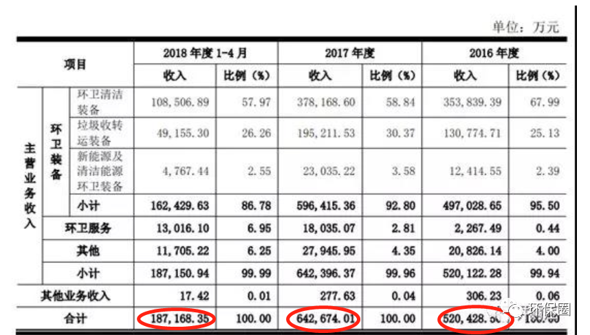 據(jù)“并購(gòu)?fù)簟眻?bào)道,2016年、2017年、2018年1-4月,中聯(lián)環(huán)境分別實(shí)現(xiàn)營(yíng)收52.04億元、64.27億元、18.72億元(如下圖標(biāo)紅處),凈利潤(rùn)則達(dá)到6.89億元、7.59億元、2.08億元。