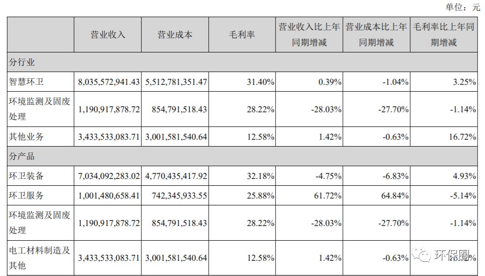 圖為2019盈峰環(huán)境各板塊的營(yíng)收占比(數(shù)據(jù)來源:企業(yè)年報(bào))