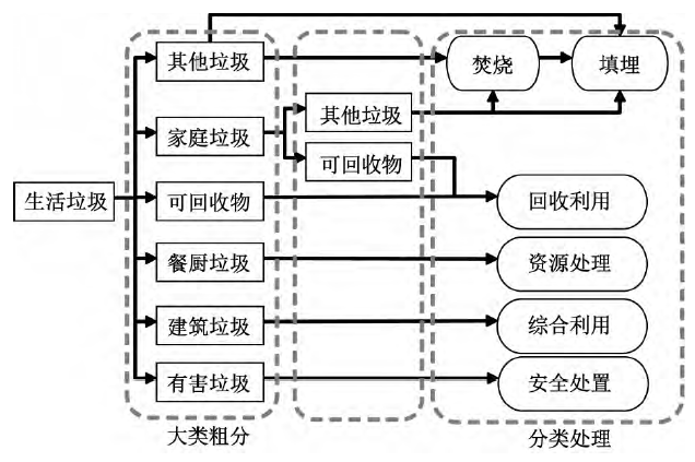 梳理我國(guó)垃圾分類相關(guān)政策,分析生活垃圾處理及分類現(xiàn)狀,總結(jié)目前存在的問題,并提出適宜我國(guó)國(guó)情的生活垃圾處理模式和技術(shù)發(fā)展趨勢(shì):城市應(yīng)建設(shè)靜脈產(chǎn)業(yè)基地,區(qū)域布局可再生回收體系,重視有害垃圾的收集處理,發(fā)展高效的餐廚垃圾處理技術(shù),提升廚余垃圾設(shè)施處理能力;農(nóng)村應(yīng)推行多樣化有機(jī)廢棄物處理方式,建立因地制宜的可回收物收集模式,區(qū)域統(tǒng)籌其他垃圾的處理,部門協(xié)同管理有害垃圾的回收處理。