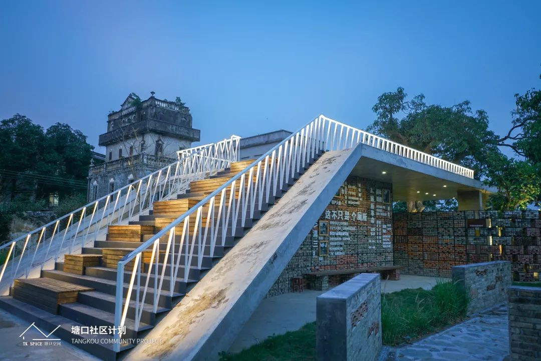 近年來,江門市住房和城鄉(xiāng)建設(shè)局按照省部設(shè)計下鄉(xiāng)工作要求,通過示范引領(lǐng)、設(shè)計先行,積極引導(dǎo)和支持開平市塘口鎮(zhèn)打造設(shè)計下鄉(xiāng)和美麗鄉(xiāng)村共同締造連片示范。作為省級設(shè)計下鄉(xiāng)試點鎮(zhèn)的開平市塘口鎮(zhèn),緊緊圍繞鄉(xiāng)村振興、設(shè)計先行的理念,以資源為導(dǎo)向?qū)⑹痉镀鳛橐?guī)劃建設(shè)重點,以打造一條美麗鄉(xiāng)村精品線路為目標,重點開展3A級旅游公廁、文創(chuàng)樓等精品項目設(shè)計與建設(shè)。榮獲2020年世界景觀建筑獎(WLA)的塘口祖宅旅游廁所就是其中精品項目 。該建筑巧妙地將舊公廁清拆的舊材料進行重新利用,保留了鄉(xiāng)村歷史記憶。同時,將衛(wèi)生間部分功能區(qū)藏在一個供村民日常休閑娛樂、舉辦活動的大臺階之下,解決了公共廁所便利性與隱蔽性的矛盾關(guān)系。