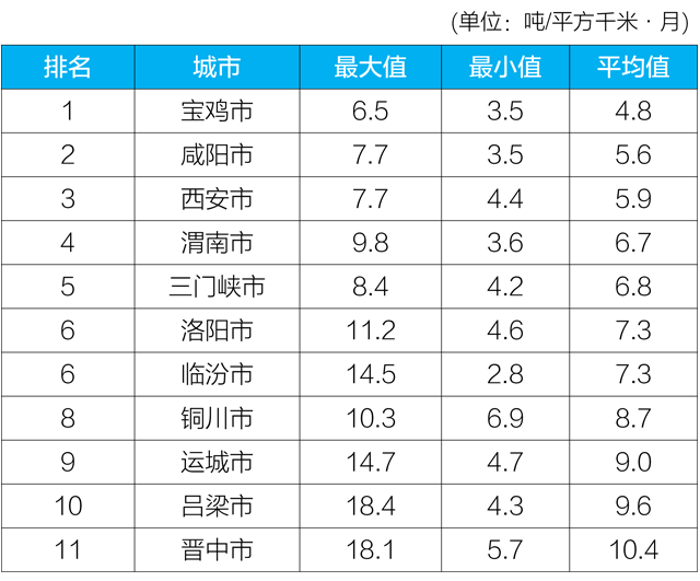 2020年4月汾渭平原11城市降塵監(jiān)測(cè)結(jié)果