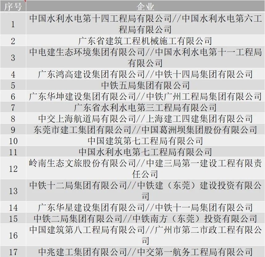 2020年4月,東莞市東江下游片區(qū)水污染綜合治理工程(污水收集系統(tǒng)完善工程)開始正式招標(biāo),約有50余家企業(yè)入圍資格預(yù)審,分別是: