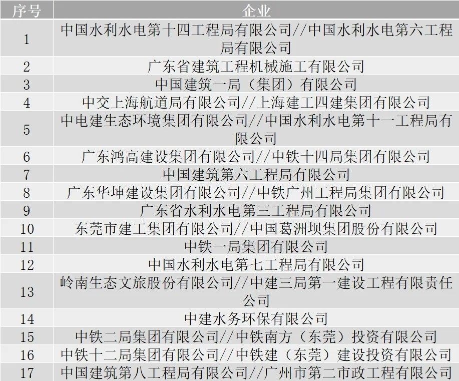 據(jù)了解,5月9日,東莞市東江下游片區(qū)水污染綜合治理工程(污水收集系統(tǒng)完善工程)三標(biāo)段開標(biāo)。通過資格預(yù)審的企業(yè)包括17家,分別是: