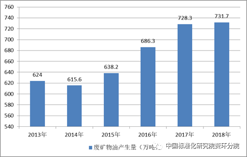 據統(tǒng)計,我國每年產生大量的廢礦物油,2013年我國廢礦物油行業(yè)產生量約624萬噸,到2018年產生量達到了731.7萬噸。