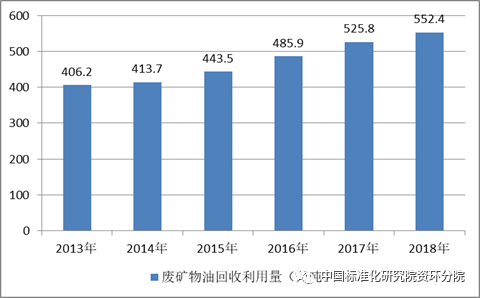 同時,我國廢礦物油的回收利用量也逐年攀升。2013年我國廢礦物油行業(yè)回收利用量約406.2萬噸,到2018年達到了552.4萬噸。