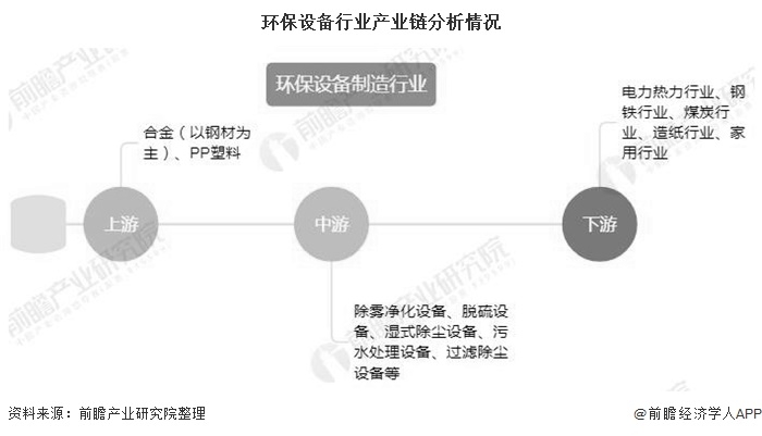 中國環(huán)保產(chǎn)業(yè)鏈的結(jié)構(gòu),主要包括上游市場即工業(yè)“三廢”的排放,以及在生活中產(chǎn)生的廢品,廢水等。環(huán)保設(shè)備制造是中國環(huán)保產(chǎn)業(yè)鏈中的重要組成部分,其上游主要是生產(chǎn)設(shè)備所需的鋼材、有色金屬、PP塑料等原材料,下游主要包括電力熱力行業(yè)、鋼鐵、煤炭行業(yè)、造紙行業(yè)等。