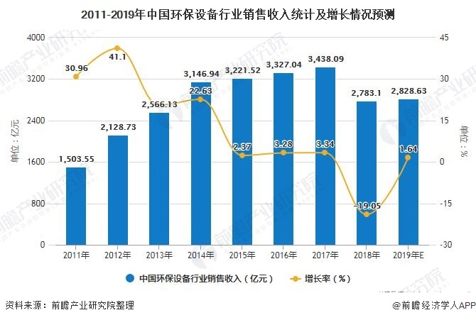 4、2019年中國環(huán)保設(shè)備行業(yè)銷售收入將超2800億元