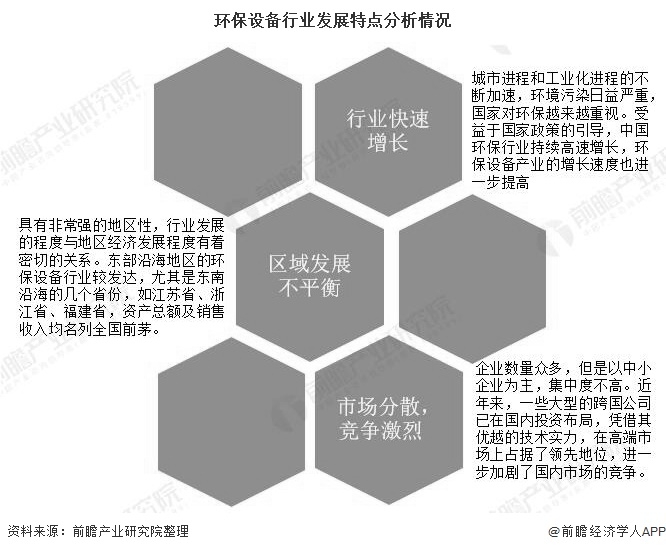 環(huán)保設(shè)備行業(yè)的發(fā)展共有三大特點(diǎn),分別是行業(yè)快速增長、區(qū)域發(fā)展不平衡及市場分散,競爭激烈。具體分析如下: