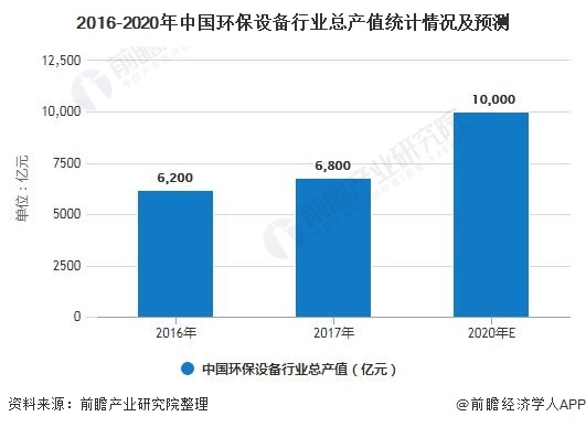 2、2020年中國環(huán)保設(shè)備行業(yè)總產(chǎn)值或?qū)⑼黄迫f億元