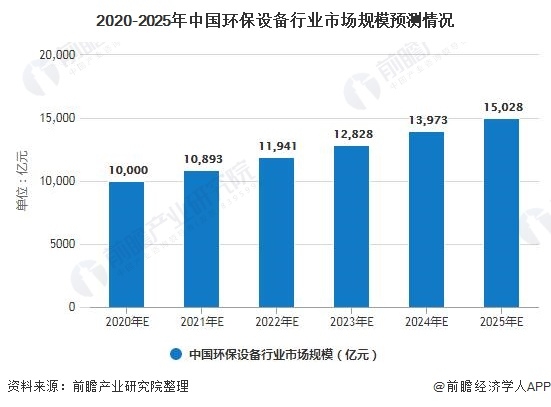 預(yù)計(jì)2020年,環(huán)保裝備制造業(yè)市場規(guī)模將達(dá)到10000億元,2025年市場規(guī)模將達(dá)到15028億元。