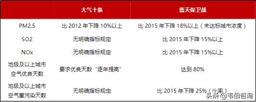 圖表3:“藍(lán)天保衛(wèi)戰(zhàn)”與“大氣十條”主要指標(biāo)對(duì)比