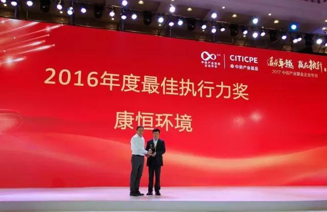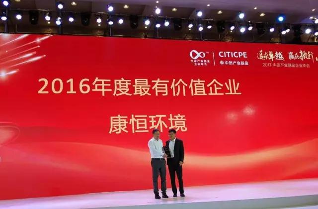 本屆年會以“追求卓越、贏在執(zhí)行” 為主題,中信產(chǎn)業(yè)基金董事長劉樂飛、總裁田宇分別發(fā)表主旨演講。康恒環(huán)境董事長兼CEO龍吉生博士發(fā)表獲獎感言時表示 : "我很榮幸代表康恒環(huán)境領(lǐng)取‘2016年度最有價值企業(yè)’獎,這個榮譽,我將獻給康恒環(huán)境的管理團隊和所有康恒環(huán)境的員工,感謝所有支持康恒環(huán)境的中信產(chǎn)業(yè)基金的領(lǐng)導(dǎo),未來,康恒環(huán)境將秉承‘誠信、勤儉,敬業(yè)、責(zé)任,團隊、創(chuàng)新’的企業(yè)價值觀,牢記創(chuàng)造‘更潔凈更友好的生活環(huán)境’的企業(yè)使命,早日將康恒環(huán)境打造為 '跨世紀的全球城市固廢綜合治理行業(yè)領(lǐng)跑者' ”。