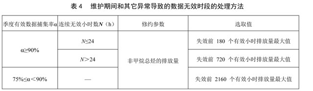 11.2.4 NMHC-CEMS有計劃(質(zhì)量保證/質(zhì)量控制)的維護保養(yǎng)、校準及其它異常導致的數(shù)據(jù)無效時段,該時段污染物排放量按照表4處理,非甲烷總烴濃度和廢氣參數(shù)不修約。