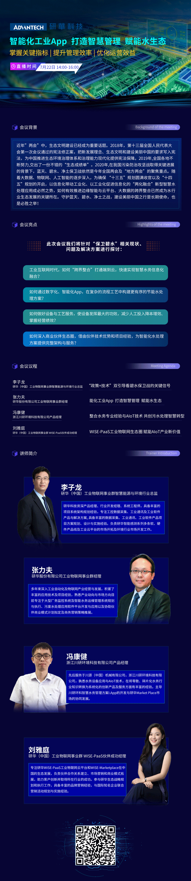 2020年7月22日14:00~16:00,由研華科技主辦的“智能化工業(yè)App 打造智慧管理 賦能水生態(tài)”在線研討會將在環(huán)保在線HB課堂正式開播。