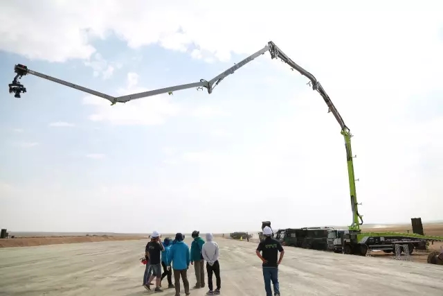 作為此次全球直播任務(wù)唯一大型裝備專供企業(yè),中聯(lián)重科共調(diào)派了95噸及以上的大噸位汽車起重機(jī),4.0泵車,消防云梯車等10余臺(tái)高端設(shè)備助力央視拍攝。據(jù)中聯(lián)重科該項(xiàng)目技術(shù)負(fù)責(zé)人趙建陽(yáng)介紹,與以往的閱兵儀式不同,此次沙場(chǎng)閱兵地處塞北大漠之中,光照強(qiáng)烈,常年風(fēng)沙大,對(duì)設(shè)備和現(xiàn)場(chǎng)工作人員而言都是極大的考驗(yàn)。