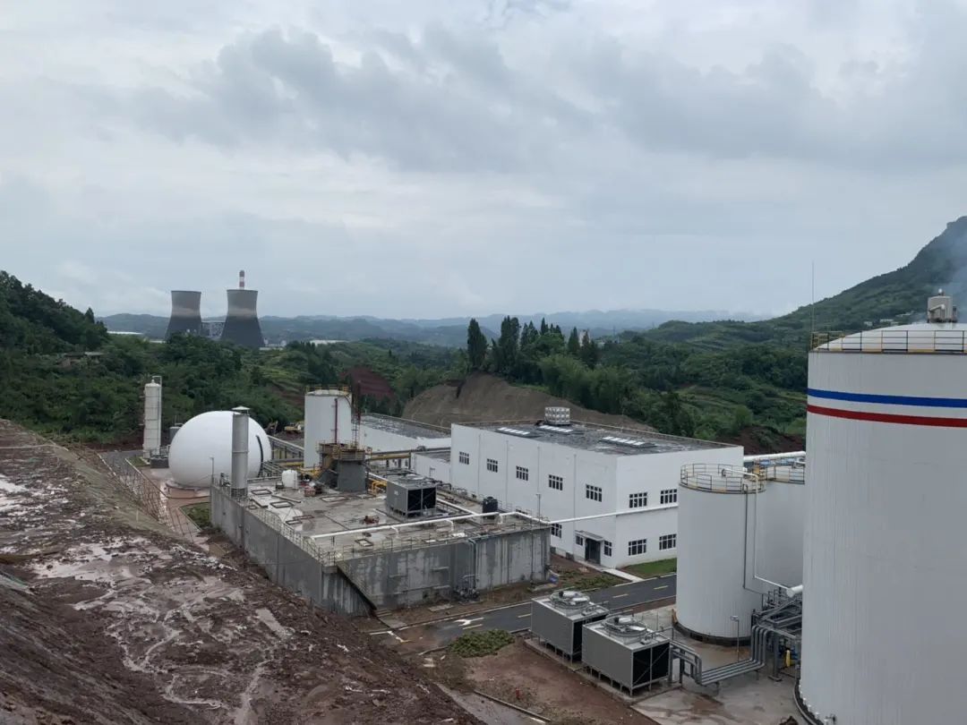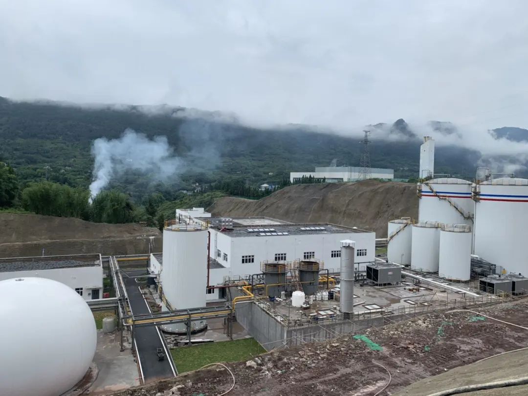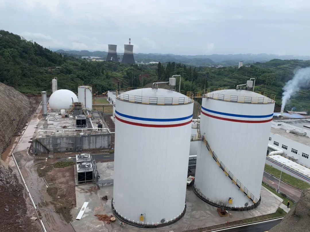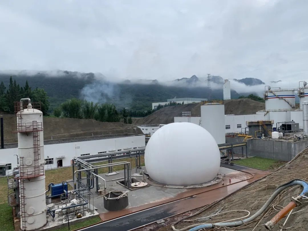 現場的設備涉及到厭氧罐、調節(jié)罐、中儲罐、干式脫硫塔、沼氣儲罐、脫氮罐、火炬、MBR膜系統(tǒng)、熱平衡系統(tǒng)等。如圖所示:
