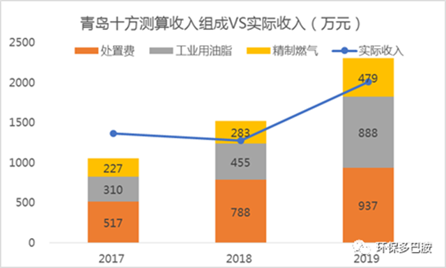 3)在煙臺(tái)項(xiàng)目中,政府處置費(fèi)占比45%,粗油脂銷售占比36%,精制燃?xì)怃N售占比19%。這主要是由于煙臺(tái)項(xiàng)目實(shí)際處置量低于政府保底量,因而實(shí)際處置產(chǎn)生的粗油脂及燃?xì)怃N售較低,而政府依據(jù)保底量付出的處置費(fèi)占比較高。