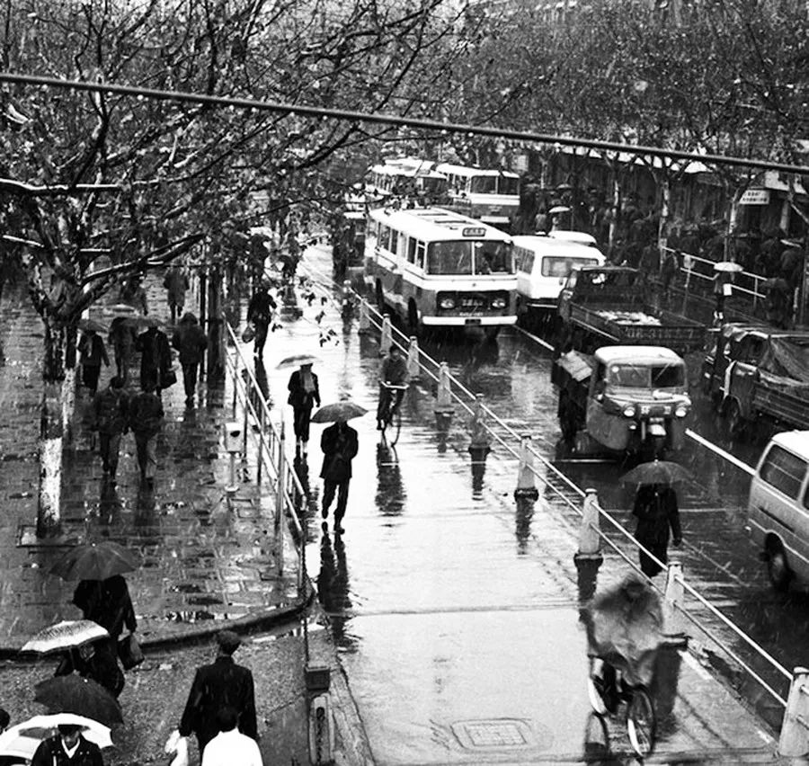 1981年的上海街景。圖中那輛三輪環(huán)衛(wèi)車(chē)輛,很可能是上海市工具修配廠1968年開(kāi)始試制,20世紀(jì)70年代的主力環(huán)衛(wèi)垃圾清運(yùn)車(chē)——工農(nóng)牌手把式三輪機(jī)動(dòng)垃圾車(chē)(陸杰/攝)