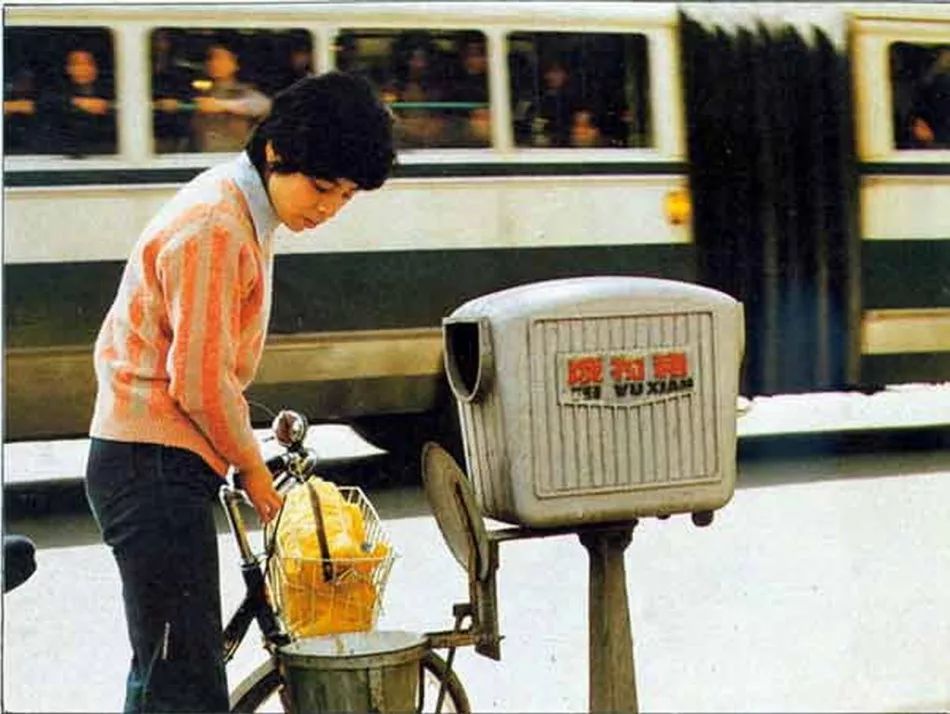 20世紀(jì)80年代上海街頭的廢物箱和痰盂罐,這也可以視為早期的“干濕分離”