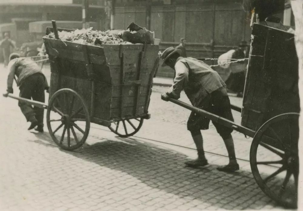 20世紀(jì)30年代,上海街頭的清道夫及垃圾收集車(chē)輛