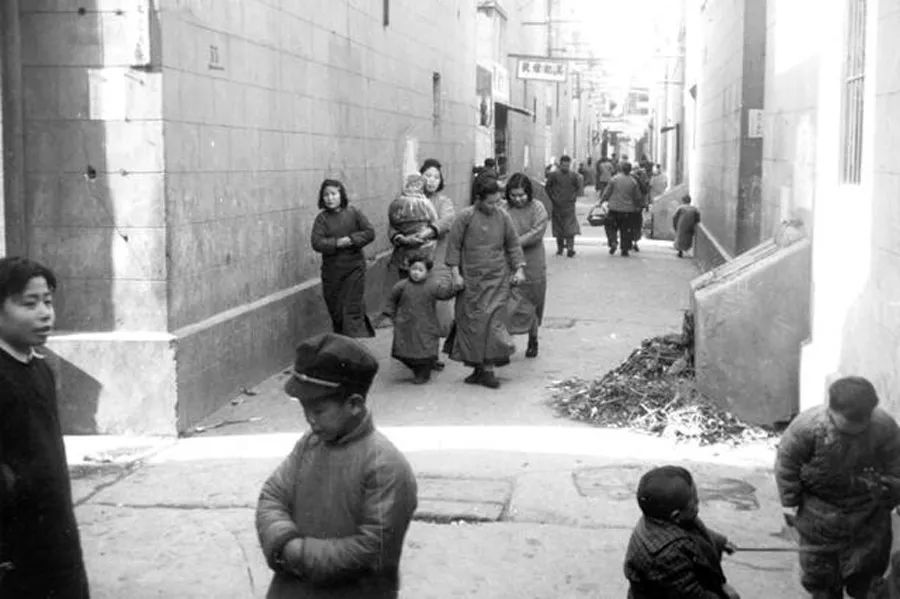 20世紀(jì)40年代,上海某弄堂中的情景。圖中可見(jiàn)每個(gè)支弄口都有垃圾箱,但維護(hù)較差,環(huán)境堪憂