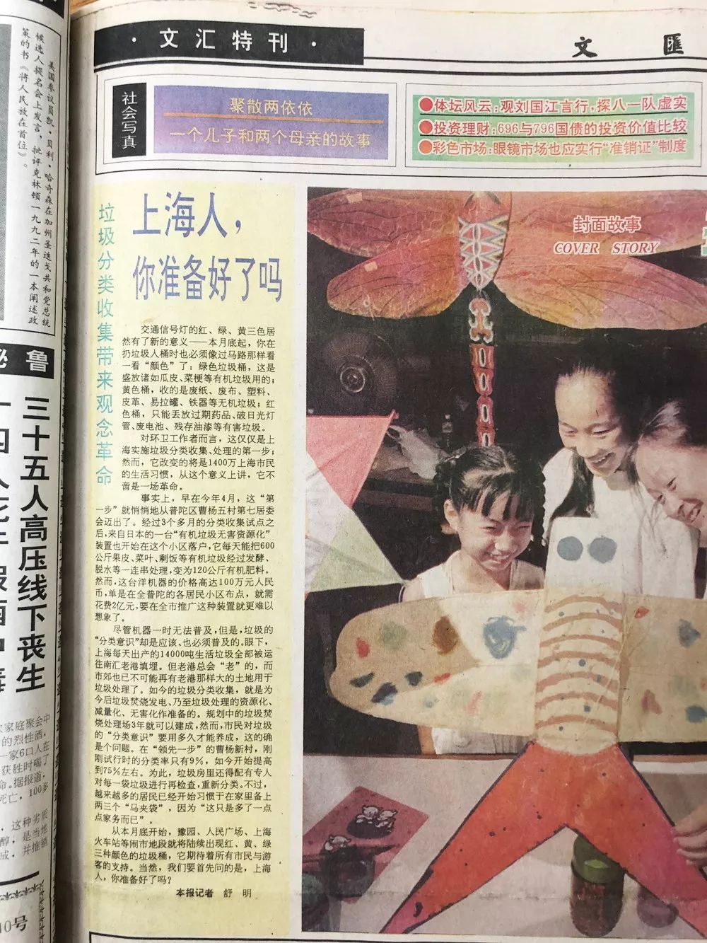 1996年8月17日《文匯報(bào)》文匯特刊版面刊載“垃圾分類(lèi)收集帶來(lái)觀念革命 上海人,你準(zhǔn)備好了嗎?”