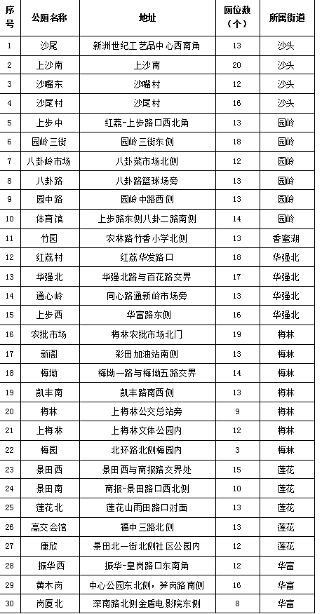 深圳市福田區(qū)垃圾清運及公廁管理服務項目服務范圍為: