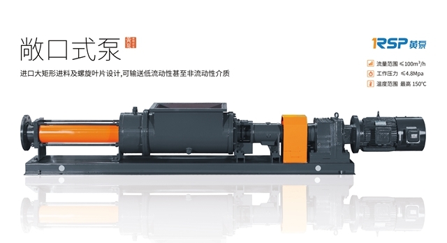 黃泵敞口式單螺桿泵進口腔體為矩形進料斗設(shè)計,內(nèi)裝有進料螺旋葉片,可輸送高粘度、流動性差或非流動性介質(zhì),如脫水污泥等。