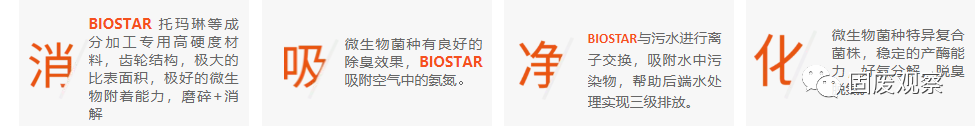 本技術(shù)采用的BIOSTAR生物載體, 采用托瑪琳等成分加工的高硬度材料,硬度較牙齒更高??梢愿咝f(xié)助磨碎大顆粒的有機(jī)物。載體材料對人體無害,通過獨(dú)特加工工藝在載體中制造更多適合微生物體積的小孔,具有極好的微生物附著能力,防水沖刷能力、氣體滯留吸收轉(zhuǎn)化空間,為微生物提供長期生存、有機(jī)物分解的環(huán)境條件。載體中生物降解和物理過濾過程同步進(jìn)行;可實(shí)現(xiàn)優(yōu)秀的微生物附著性能,經(jīng)過水流沖刷或食物揉碾過程,微生物擴(kuò)繁在4-8h內(nèi)恢復(fù)到100%。設(shè)備中形成了長期穩(wěn)定可持續(xù)微生態(tài)環(huán)境,有效促進(jìn)微生物降解的效率。