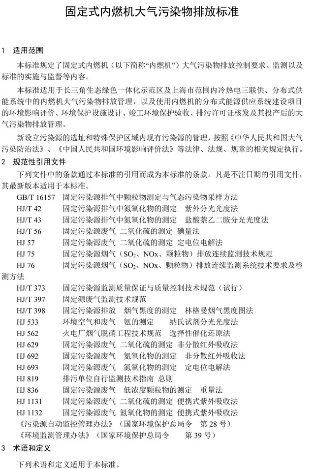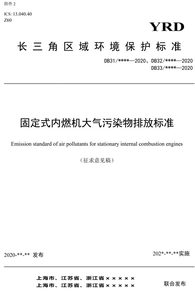 為貫徹落實(shí)《長江三角洲區(qū)域一體化發(fā)展規(guī)劃綱要》,推進(jìn)長三角生態(tài)綠色一體化發(fā)展示范區(qū)標(biāo)準(zhǔn)統(tǒng)一工作,上海市生態(tài)環(huán)境局、江蘇省生態(tài)環(huán)境廳、浙江省生態(tài)環(huán)境廳共同組織起草了固定式內(nèi)燃機(jī)大氣污染物排放標(biāo)準(zhǔn)(征求意見稿)。