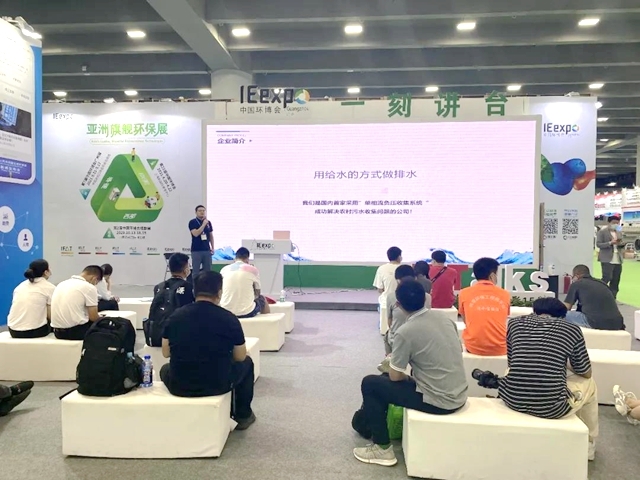 本次環(huán)博會技術(shù)交流大會上,上海在田技術(shù)經(jīng)理朱云峰就“單相流負壓排水技術(shù)在多場景的應(yīng)用”這一議題發(fā)表了演講,還與多位業(yè)內(nèi)專家進行了技術(shù)交流。一番交流之后,各位專家紛紛對負壓排水技術(shù)在國內(nèi)應(yīng)用的前景給予了肯定。