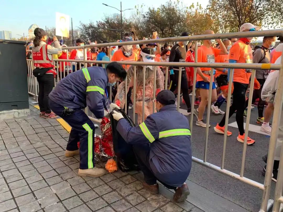 賽道保潔:起跑點(diǎn)開跑后,采取雁式保潔、六車聯(lián)動(dòng)的保潔方式。由于賽道為機(jī)動(dòng)車道,因此不能等到通車后再清掃,作業(yè)人員在開跑后,立即進(jìn)行作業(yè),以最短時(shí)間完成賽道保潔及垃圾清掃。