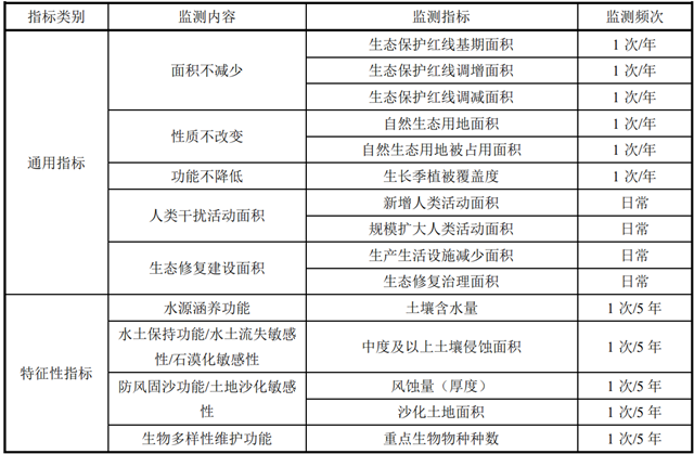 監(jiān)測內(nèi)容包括生態(tài)保護(hù)紅線內(nèi)年度實(shí)際完成的各類型人類活動(dòng)及設(shè)施清退面積與生態(tài)修復(fù)治理面積總和。