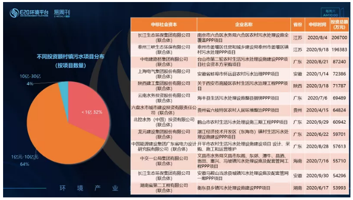 左圖為各月村鎮(zhèn)污水類項(xiàng)目釋放情況,8月釋放的村鎮(zhèn)污水類項(xiàng)目投資額最大,其次是9月份。