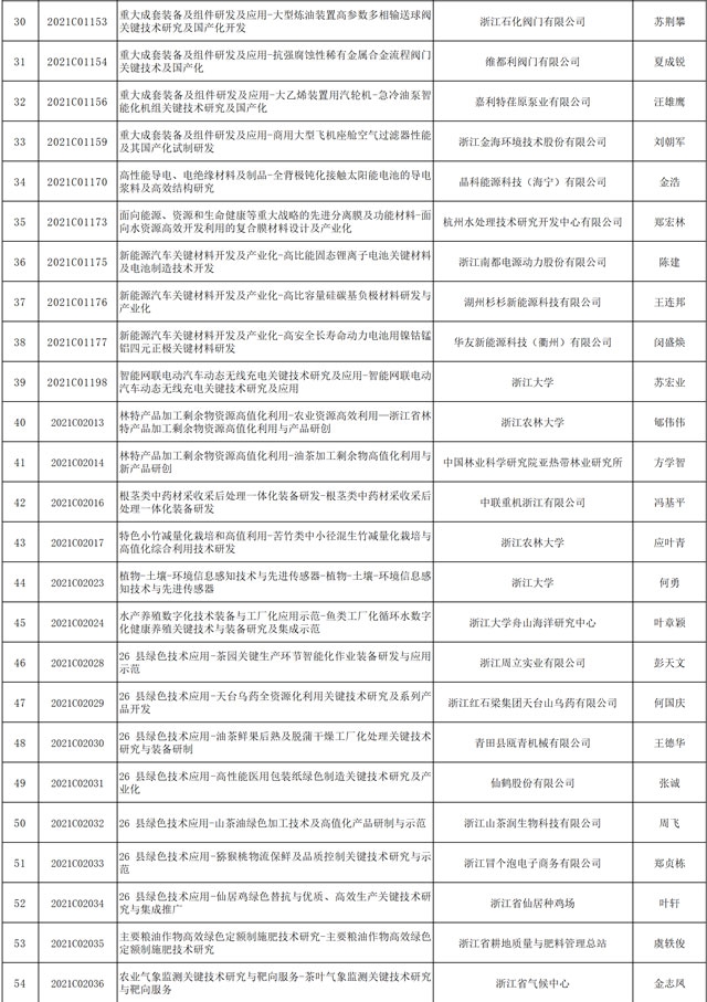 2020年11月23日,浙江省科學技術廳公開2021年度省重點研發(fā)計劃項目。