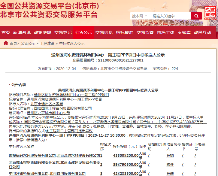 原標(biāo)題:3.68元/立方米 國(guó)投信開水環(huán)境聯(lián)合預(yù)中標(biāo)北京通州河?xùn)|資源循環(huán)利用中心項(xiàng)目