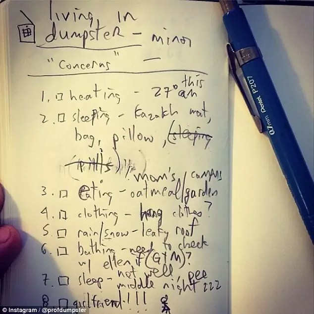 他飛跑去向教務長申請: “我想把校園草坪上的垃圾箱變成一個微小的可持續(xù)的家,并到里面去住。” 教務長雖然不是很懂這個教授的腦回路,但是想想垃圾箱也不貴,就同意了。