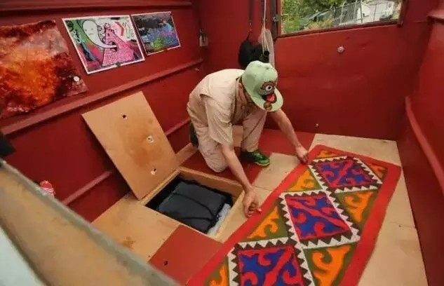 看到威爾遜歡樂地從垃圾箱里蹦進蹦出,可不要以為這是什么一時興起的行為藝術,因為他在垃圾箱里已經住了一年,還把小小的居住空間,升級成了這樣的極簡智能住宅。