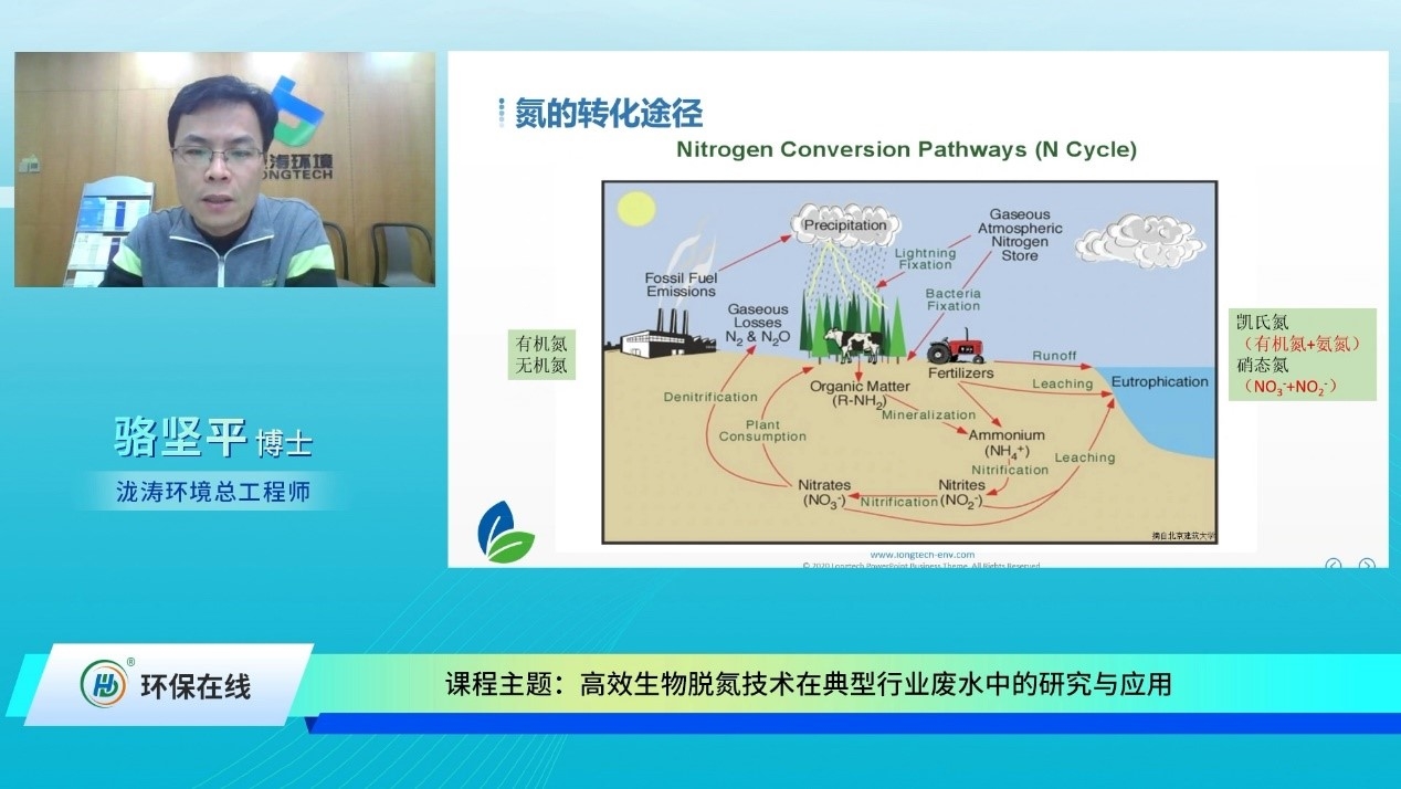 2020年12月23日14點,由北京瀧濤環(huán)境科技有限公司總工程師駱堅平博士帶來的“高效生物脫氮技術在典型行業(yè)廢水中的研究與應用”線上課程如期開播,吸引了超過2000名網(wǎng)友到課聽講。