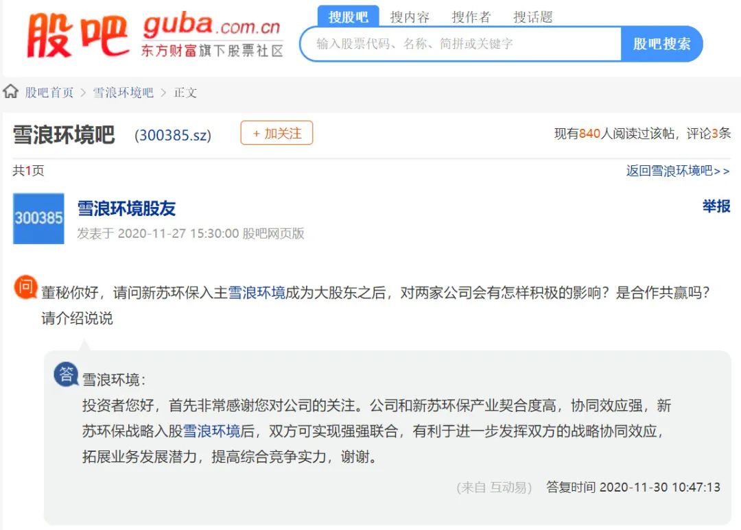 12月21日,雪浪環(huán)境發(fā)布公告顯示,公司又簽了一筆5000多萬元的大單。這是一個利用處置含銅、含鎳廢物10萬噸/年環(huán)保安全提質改造項目,合同總金額為5,720萬元。與其他交易不同的是,這筆交易的客戶——無錫江豐資源再生有限公司(下稱“無錫江豐”)是新蘇環(huán)保產(chǎn)業(yè)集團有限公司(下稱“新蘇環(huán)?!保┑目毓蓪O公司,而新蘇環(huán)保同時也是雪浪環(huán)境的控股股東。因此,本次交易屬于關聯(lián)交易。今年,雪浪環(huán)境最大的變化就是混改。7月17日,雪浪環(huán)境原實控人楊建平、許惠芬及股東楊建林與新蘇環(huán)保簽署股份轉讓協(xié)議,新蘇環(huán)保取得了雪浪環(huán)境的控制權,公司實控人則變成了常州市新北區(qū)人民政府。混改之后,很多投資者都詢問董秘,合作將對兩家公司產(chǎn)生怎樣積極的影響,是否能夠產(chǎn)生“1+1大于2”的效果?雪浪環(huán)境和新蘇環(huán)保產(chǎn)業(yè)契合度高,協(xié)同效應強。新蘇環(huán)保戰(zhàn)略入股雪浪環(huán)境后,雙方可實現(xiàn)強強聯(lián)合,有利于進一步發(fā)揮雙方的戰(zhàn)略協(xié)同效應,拓展業(yè)務發(fā)展?jié)摿?,提高綜合競爭實力。事實也證明了這一點。除了上面提到的與無錫江豐的合作,11月6日,雪浪環(huán)境還與上海環(huán)境研究院簽署協(xié)議,對方向公司采購了價值1690萬元的煙氣凈化系統(tǒng)設備。與無錫江豐類似,上海環(huán)境研究院也是新蘇環(huán)保的全資子公司,本次交易也同屬關聯(lián)交易。混改除了為雪浪環(huán)境帶來新的訂單,更直接的作用則是——錢來了。11月23日,雪浪環(huán)境就發(fā)布公告稱,擬向平安銀行無錫分行申請綜合授信額度3億元,向北京銀行無錫分行申請授信額度5000萬元,向廣發(fā)銀行無錫錫山支行申請綜合授信額度1億元,總共擬申請4.5億元的授信額度。12月21日,雪浪環(huán)境又擬向興業(yè)銀行申請授信額度2.5億元,授信期限2年。僅這兩筆申請,就能為雪浪環(huán)境新增7億元的授信。國資的入主,給雪浪環(huán)境增添了很大背書。12月7日,雪浪環(huán)境還公告稱,公司與上海浦發(fā)銀行無錫分行簽署了并購貸款合同、權利最高額質押合同等相關文件,貸款金額2.3億元,貸款期限為7年。這筆錢,主要就是用于并購上海長盈環(huán)保服務有限公司(下稱上海長盈)52%股權的現(xiàn)金對價支付。并購完成后,上海長盈也被納入了公司的合并報表,這讓雪浪環(huán)境的三季報增色不少。三季報顯示,今年三季度,雪浪環(huán)境的營收比上年同期增長25.85%,凈利潤增長591.09%。而在3個月之前,半年報的時候,雪浪環(huán)境的營收還是-8.49%,凈利潤則為-98.35%,上海長盈的并表使得這兩個數(shù)字都由負轉正了。國資入主,也極大地緩解了原股東的高質押率。公開信息顯示,混改之前的2019年8月,雪浪環(huán)境控股股東、實控人楊建平的質押率為88.46%,另一實控人許惠芬質押率則為60.31%,股東惠智投資質押率更是高達94.58%。而到了混改之后的今年11月,楊建平所持的公司股份則已解除質押,股東及其一致行動人所持公司股份已經(jīng)不存在質押情況了。短短幾個月,雪浪環(huán)境就已經(jīng)解決了資金問題,緩解了高質押率,項目合作遍地開花,申請的幾億元授信也保證了公司的日常經(jīng)營和發(fā)展。雖然股價還暫時處于低迷,但轉折的曙光已經(jīng)乍現(xiàn)。公開信息顯示,雪浪環(huán)境成立于2001年,是煙氣凈化與灰渣處理領域較早的進入者之一。2014年6月公司上市后,又將危廢處置作為重點業(yè)務方向發(fā)展。上市后,雪浪環(huán)境的營業(yè)收入基本平穩(wěn),但凈利潤表現(xiàn)不太盡如人意。2017年-2018年連續(xù)兩年增收不增利,直到2019年上半年才終于扭轉情況。另一邊,收購雪浪環(huán)境的新蘇環(huán)保歷史則更短,它成立于2017年9月,注冊資本10億元,是常高新集團有限公司下屬全資子公司,實控人為常州市新北區(qū)人民政府。去年8月,雪浪環(huán)境第一次透露出要混改的消息。2019年8月16日,雪浪環(huán)境公告稱,公司實控人楊建平、許惠芬及股東無錫惠智投資發(fā)展有限公司、楊珂和楊婷鈺與新蘇環(huán)保簽署股份轉讓框架協(xié)議,擬向新蘇環(huán)?;蚱渲付ㄖ黧w合計轉讓公司4207.05萬股股份,占公司總股本的20.21%。為什么要轉讓股權?按照公司董秘汪崇標的說法,引入國資是為了給公司引進戰(zhàn)略投資者,進一步優(yōu)化公司的股權結構,通過雙方資源的優(yōu)勢互補,推動上市公司更好發(fā)展。不過,汪崇標也承認,實控人家族減持部分資金,主要用于緩解股東高質押情況。今年7月17日,雙方正式簽署股份轉讓協(xié)議。隨后,楊建平無條件放棄其所持雪浪環(huán)境10%股份對應的表決權,使得常州新北區(qū)成公司實控人。9月29日,這一合作取得江蘇省國資委的批復,江蘇省國資委原則上同意此次收購事項,合作最大的懸疑落地。10月28日,雙方收到中登公司出具的《證券過戶登記確認書》,證券過戶登記手續(xù)辦理完畢,過戶日期為2020年10月27日。12月4日,法定代表人工商變更登記也完成了,公司取得了無錫市行政審批局換發(fā)的《營業(yè)執(zhí)照》,完成了工商變更登記手續(xù)。至此,雪浪環(huán)境正式易主,常州市新北區(qū)人民政府成公司實控人。在這期間,原實控人楊建平也