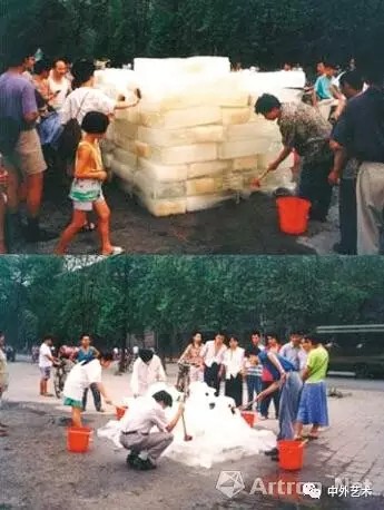 上世紀(jì)90年代,不少國內(nèi)藝術(shù)家已經(jīng)用藝術(shù)作品表現(xiàn)環(huán)境破壞問題。類似藝術(shù)家尹秀珍1995年的行為藝術(shù)《洗河》便是因?yàn)楫?dāng)時(shí)成都府南河和全國的許多河流一樣,污染非常嚴(yán)重。為了形象地說明問題的嚴(yán)重性,尹秀珍借用現(xiàn)代工業(yè)手段將府南河河水取出了十立方米,在冰廠制成冰塊,然后再運(yùn)回到岸邊以清水加以洗刷。過路的行人和市民見狀也紛紛參與其中。